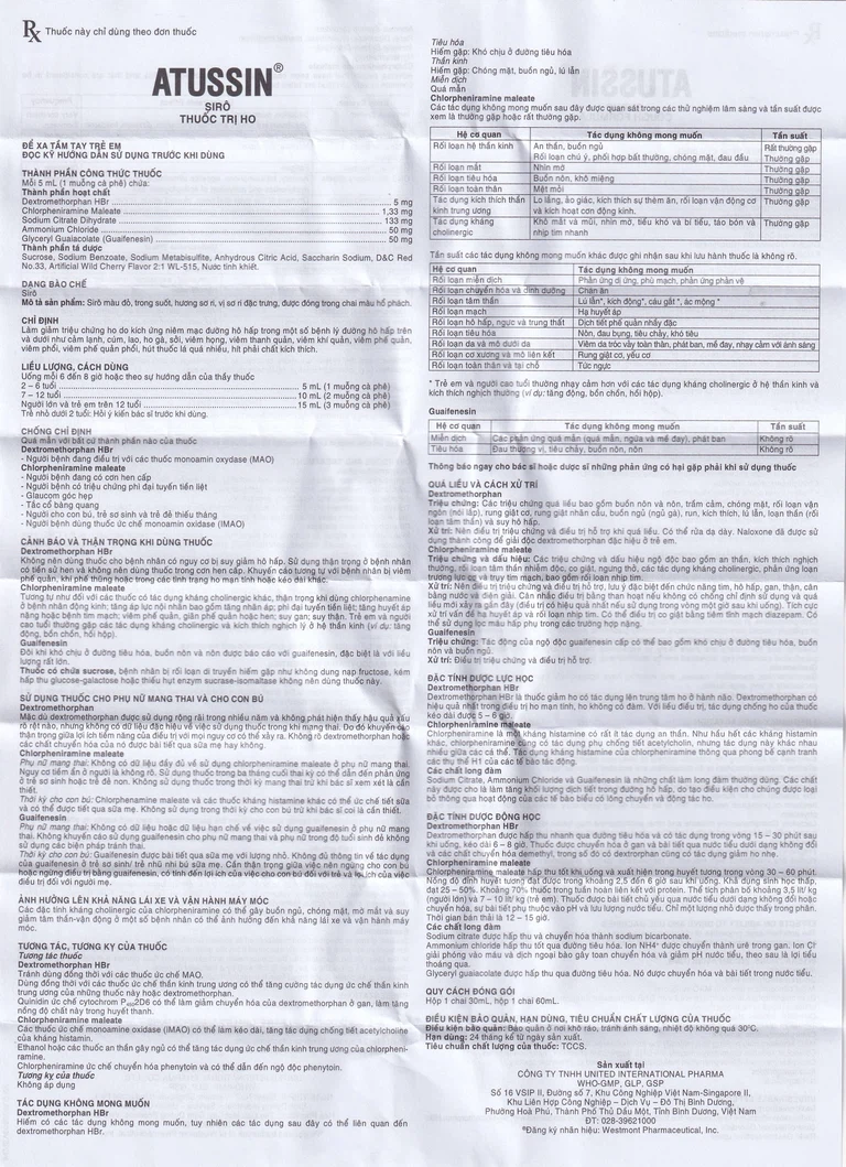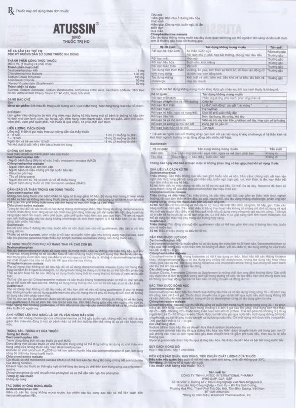 Siro Atussin được chỉ định dùng trong các trường hợp sau: