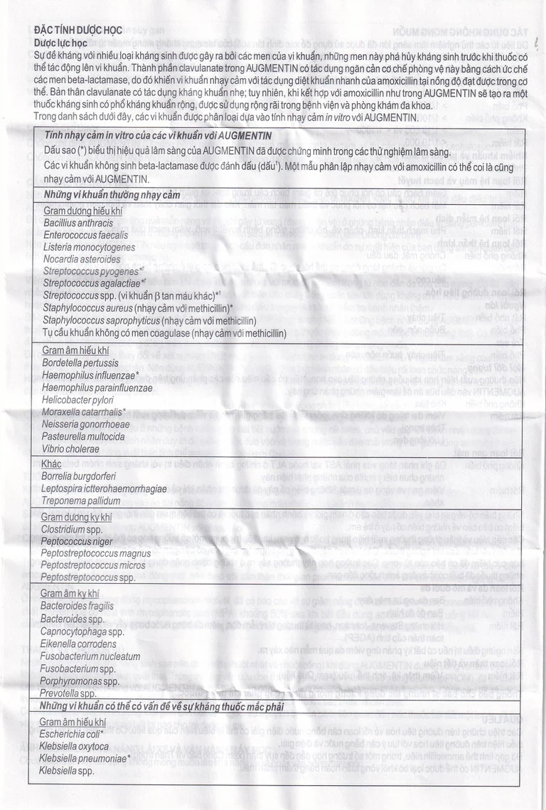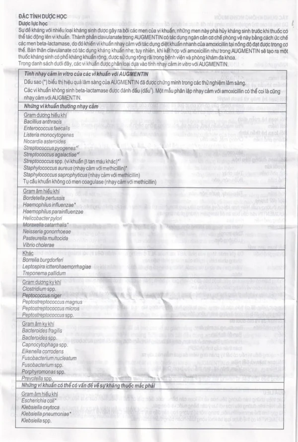 Mô tả ngắn: Thuốc Augmentin là thuốc kháng sinh phổ rộng thuộc nhóm penicillin, chống lại các vi khuẩn thường gây bệnh trong cộng đồng và bệnh viện.Augmentin 1g có thành phần hoạt chất bao gồm sự kết hợp của amoxicillin và clavulanate. Trong đó Amoxicillin (dưới dạng amoxicillin trihydrate) có tác dụng chống lại vi khuẩn gây bệnh, còn clavulanate (dưới dạng clavulanate kali) đóng vai trò là chất ức chế beta-lactamase, mở rộng phổ kháng khuẩn của amoxiccillin đối với nhiều loại vi khuẩn, kể cả các vi khuẩn kháng sinh khác thuộc nhóm beta lactam.