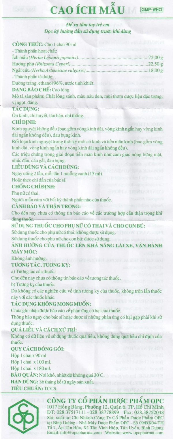 Kết quả thử nghiệm lâm sàng của Cao ích mẫu kết hợp 3 vị thuốc trên cho thấy có tác dụng trên phụ nữ bị rối loạn kinh nguyệt và đau bụng kinh: