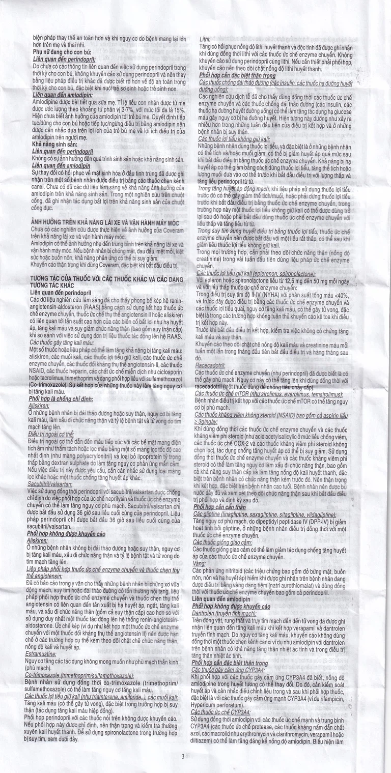Các thuốc chống tăng huyết áp (như các thuốc chẹn beta) và các thuốc giãn mạch: Sử dụng đồng thời các thuốc này có thể làm tăng tác dụng hạ huyết áp của perindopril và Amlodipine. Sử dụng thuốc đồng thời với nitroglycerin và các nitrat khác hoặc các thuốc giãn mạch khác có thể gây hạ huyết áp trầm trọng hơn, vì vậy nên được cân nhắc thận trọng.