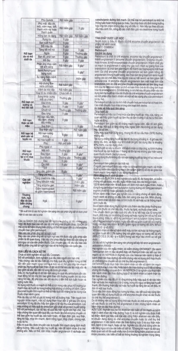 Khi sử dụng thuốc Coveram 5mg/10mg, bạn có thể gặp các tác dụng không mong muốn (ADR).