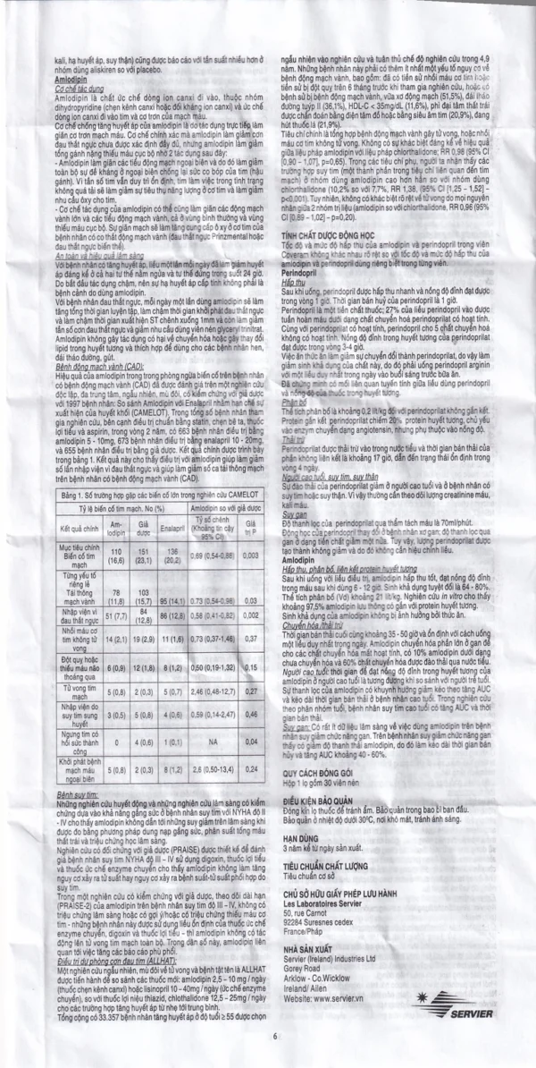 | Thành phần: | Perindopril, Amlodipine |