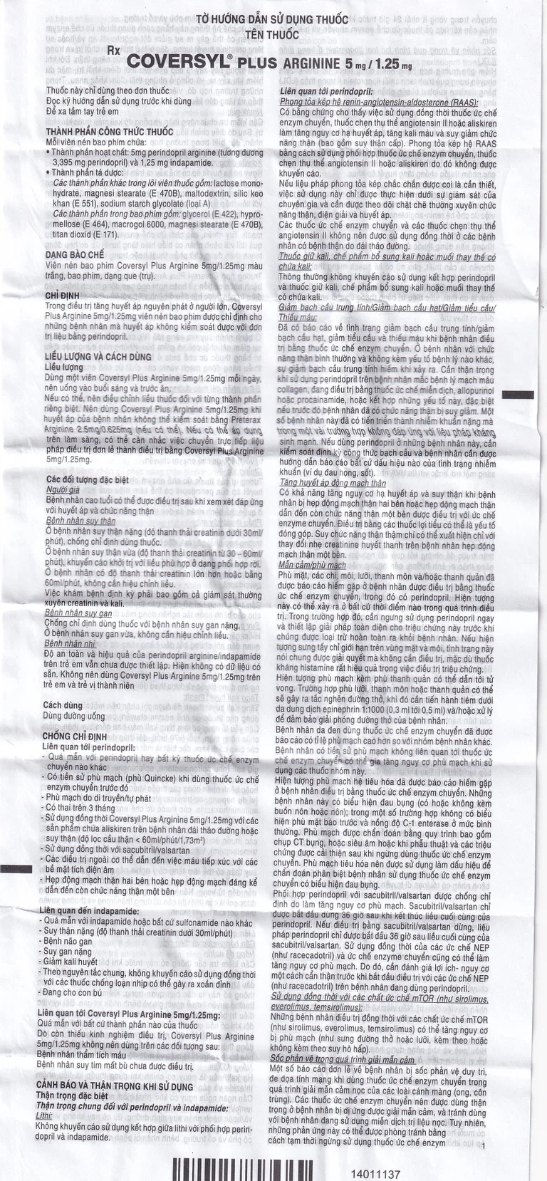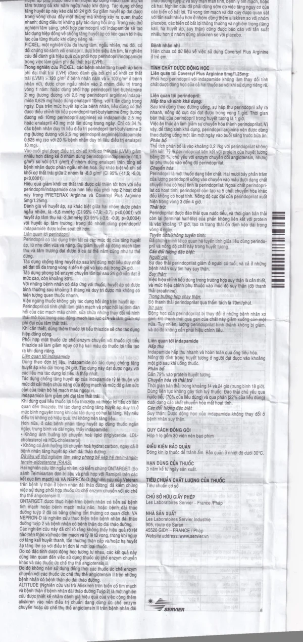 Mô tả ngắn: Thuốc Coversyl Plus là sản phẩm được sản xuất bởi Les Laboratoires Servier (France/Pháp), thành phần chính là perindopril arginin và indapamid. Đây là thuốc được dùng để điều trị tăng huyết áp và được dùng trong trường hợp huyết áp cao (tăng huyết áp).