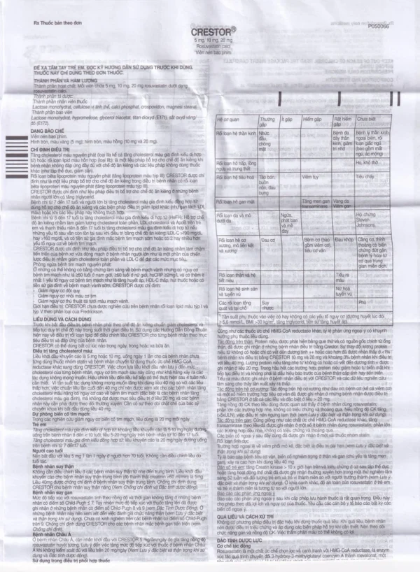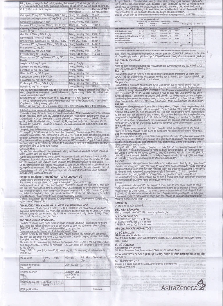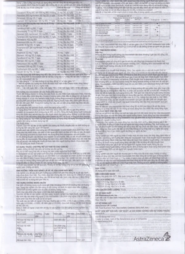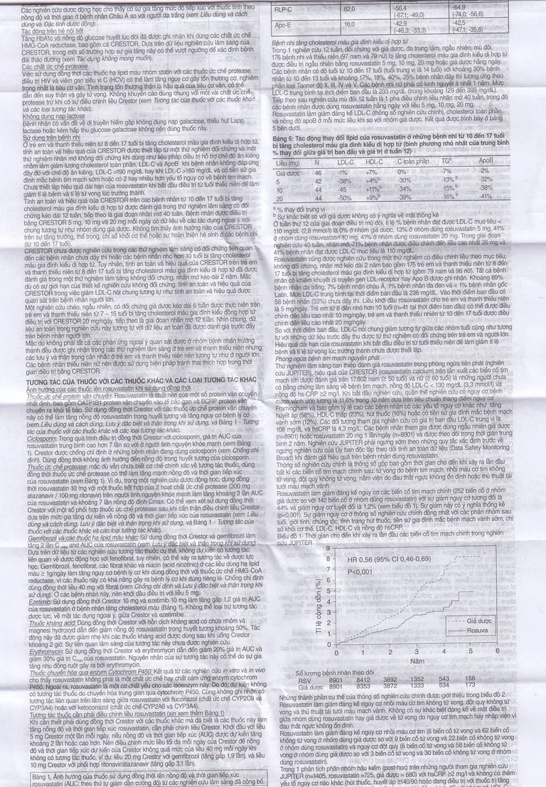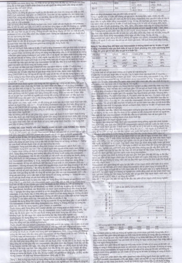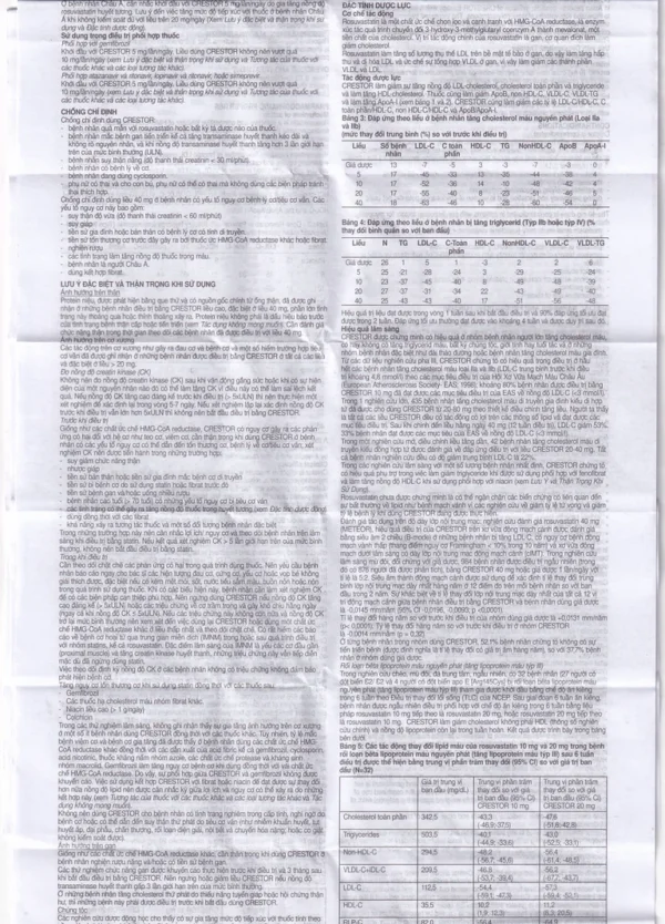 Crestor 20mg làm giảm sự tăng nồng độ LDL – cholesterol, cholesterol toàn phần và triglyceride và làm tăng HDL – cholesterol. Thuốc cũng làm giảm ApoB, non HDL – C, VLDL – C, VLDL – TG và làm tăng ApoA – l. Crestor cũng làm giảm các tỷ lệ LDL – C/HDL – C, C toàn phần/HDL – C, non HDL – C/HDL – C và ApoB/ApoA – l.