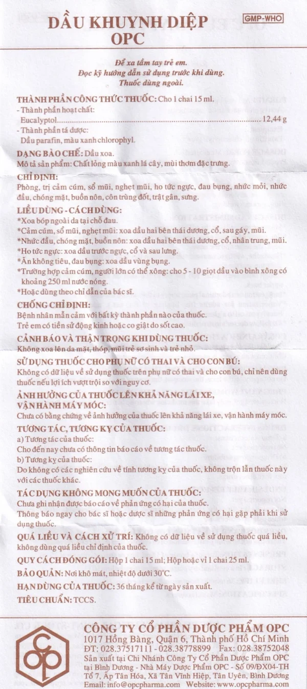 Dầu Khuynh Diệp OPC phòng và trị cảm cúm, sổ mũi, nghẹt mũi (15ml)