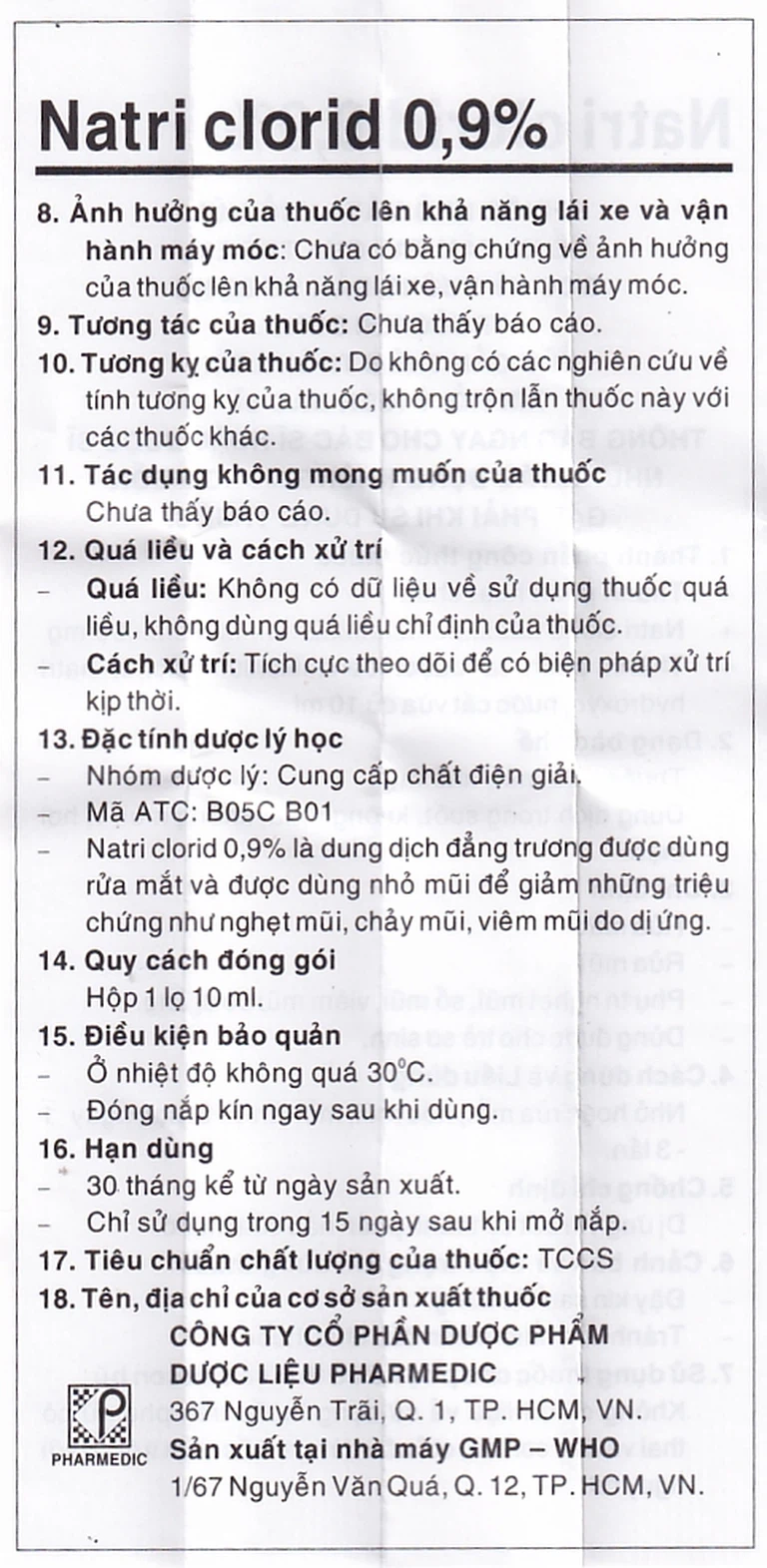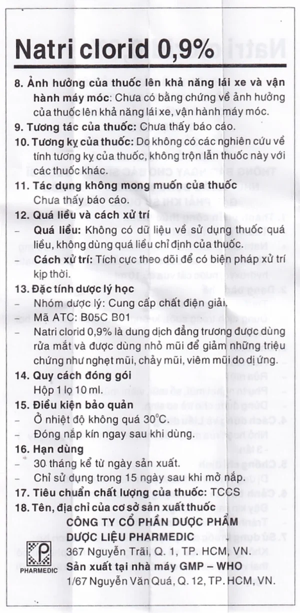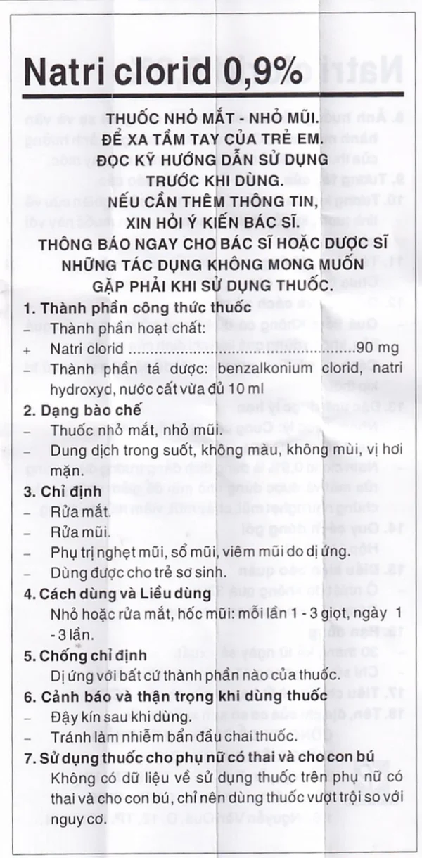 | Natri clorid | 90mg |