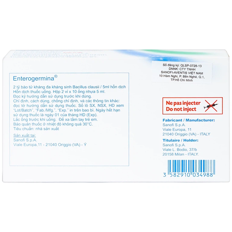 Nhờ tác dụng của Bacillus clausii, Enterogermina khi được uống vào góp phần khôi phục hệ vi khuẩn đường ruột đã bị thay đổi do nhiều nguồn gốc. Hơn nữa, vì Bacillus clausii có khả năng sản xuất một số vitamin đặc biệt vitamin nhóm B cũng góp phần bổ sung vitamin thiếu hụt do việc dùng kháng sinh và hoá trị liệu.