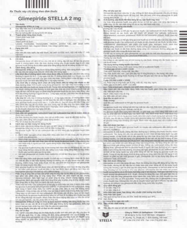Thuốc Glimepiride Stella 2mg kiểm soát đường huyết cao ở bệnh tiểu đường típ 2 (3 vỉ x 10 viên)