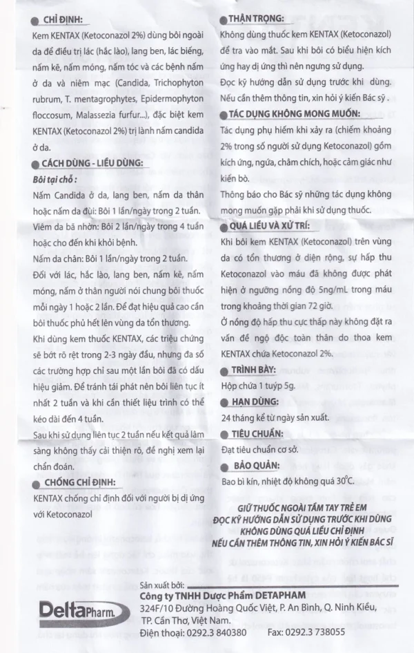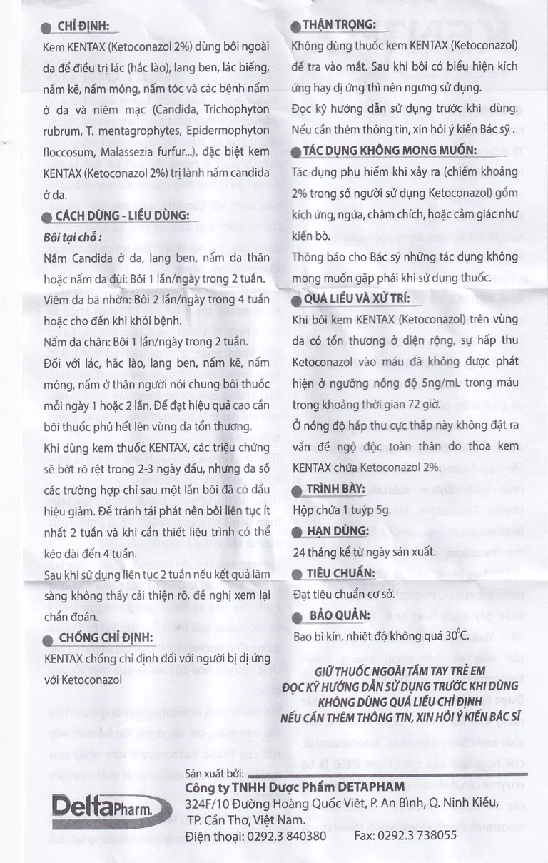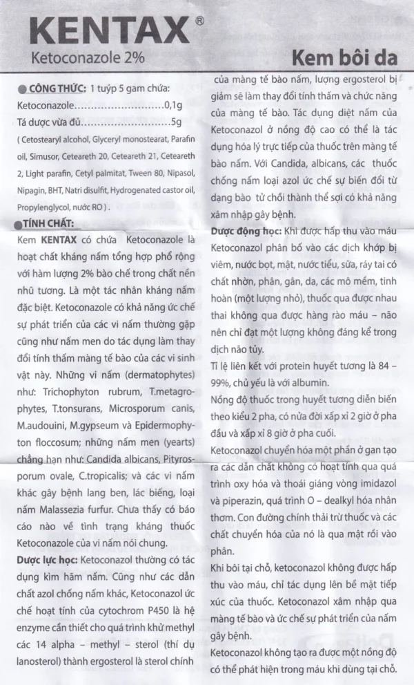 Ở nồng độ hấp thu cực thấp này không đặt ra vấn đề ngộ độc toàn thân do thoa kem Kentax chứa ketoconazol 2%.