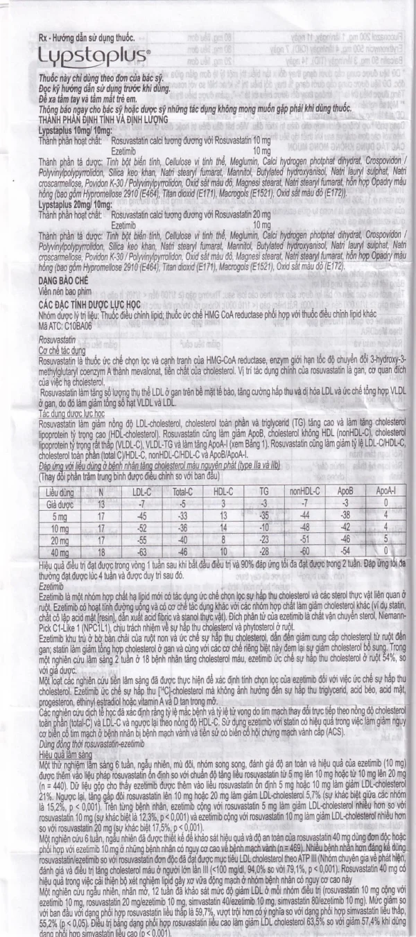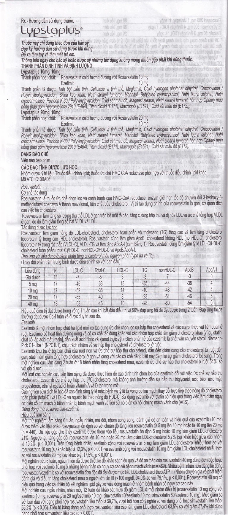 Lypstaplus 10mg/10mg không thích hợp để điều trị cho bệnh nhân cần liều rosuvastatin 20 mg.
