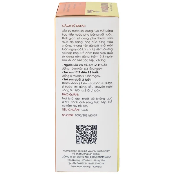 Chiết xuất lá thường xuân: Có khả năng hỗ trợ điều trị viêm đường hô hấp cấp và mạn tính có kèm triệu chứng ho. Trong lá thường xuân có chứa glycoside – hoạt chất giúp làm giãn cơ trơn phế quản, mát niêm mạc họng, long đờm, giảm đau, thông mũi và làm dịu cơn ho nhanh chóng.