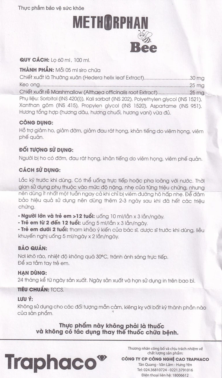 | Cao lá thường xuân | 30mg |